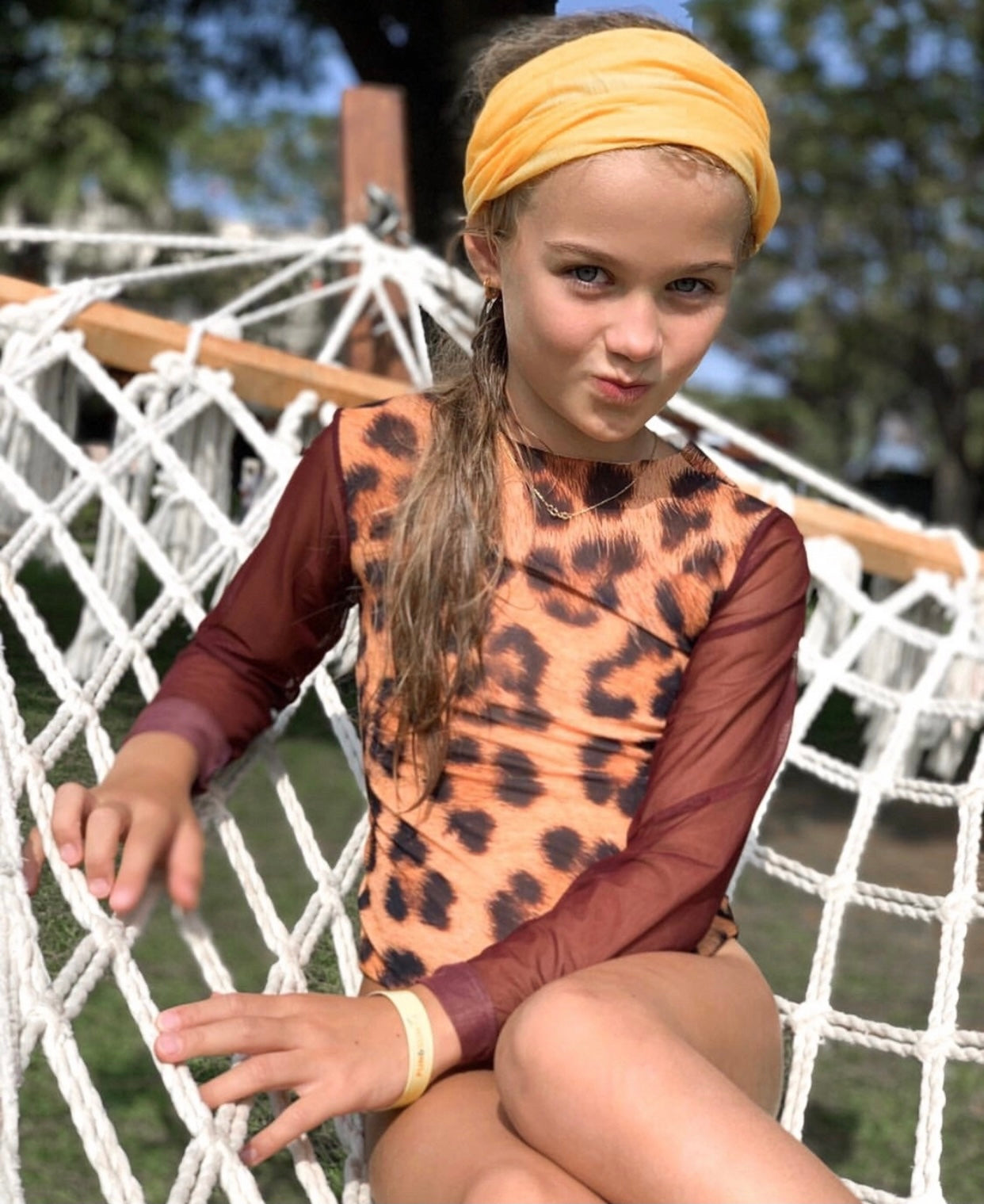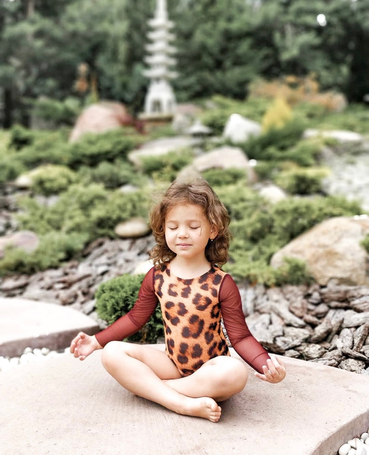 KID's girl's One-piece swimsuit with sleeves LEOPARD